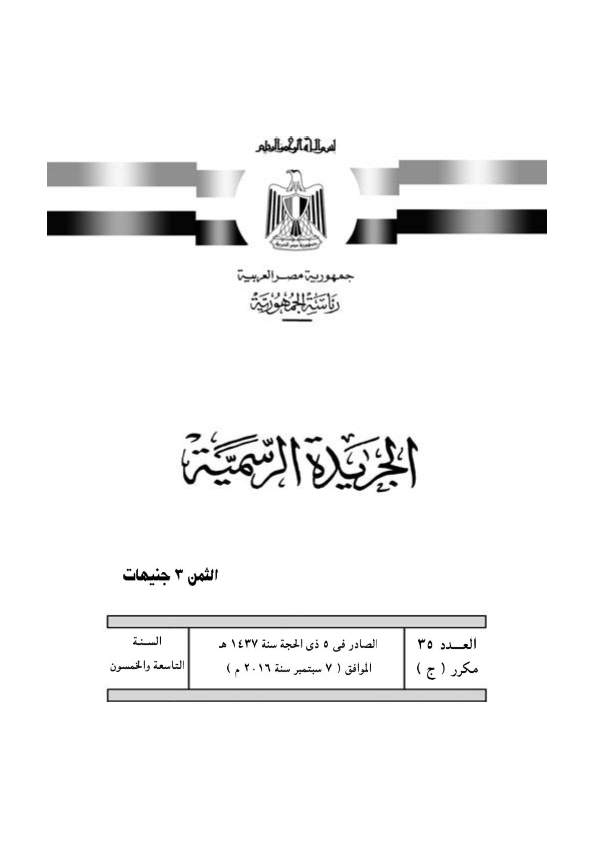 والمنشور بالجريدة الرسمية العدد 35 مكرر (ج) الصادر بتاريخ بتاريخ 7 سبتمبر 2016 ويعمل به من اليوم التالى لتاريخ نشره